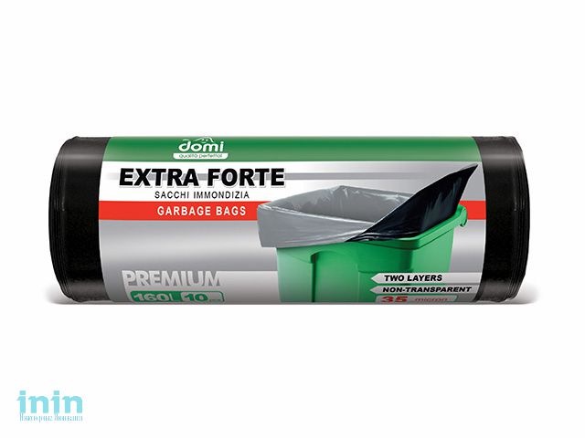 Пакеты для мусора сверхпрочные 160л/10шт DOMI (Материал: LDPE (ПЭВД). Размер: 87х120см. Толщина: 35мкм . Цвет: черный/серый.Тип дна: прямое)