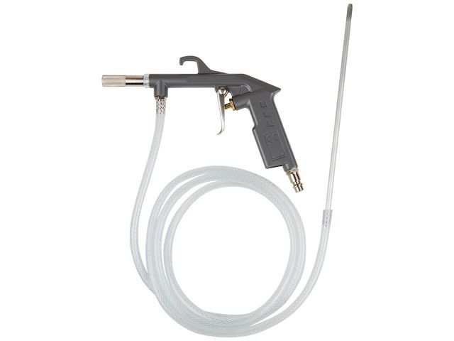 Пескоструйный пистолет позволяет очищать различные поверхности от нежелательных осадков, например, ржавчины или старой краски, для улучшения качества обрабатываемой поверхности путем удаления различных неровностей и заусениц. Так же способен полировать или матировать поверхности перед нанесением различных покрытий.