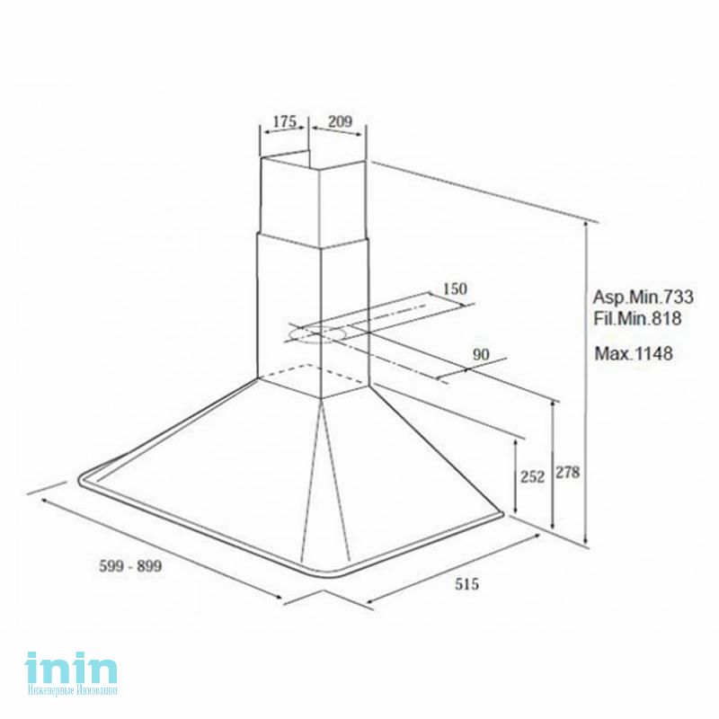 Пристенная пирамидальная вытяжка, мотор с двойной турбиной, электронная панель управления, матовое текстурированное покрытие, индикатор включения, 3 скорости, 2 алюминиевых фильтра, галогенные лампы 2*20 Вт, производительность: в тестовом режиме, м3/ч: 1130, на максимальной скорости (IEC-61591), м3/ч: 603, на минимальной скорости (IEC-61591), м3/ч: 256, уровень шума (UNE-EN 60704-2-13): на максимальной скорости, дБ: 66, на минимальной скорости, дБ: 51, в комплекте: переходник 150/120 мм, европейская вилка, опция (не входит в комплект): угольный фильтр D5C 61801259 - 2 шт., класс энергоэффективности: C, класс гидродинамической эффективности: B, класс эффективности освещения: E, класс эффективности фильтрации жира: D, максимальная номинальная мощность, Вт: 290, сделано в Польше