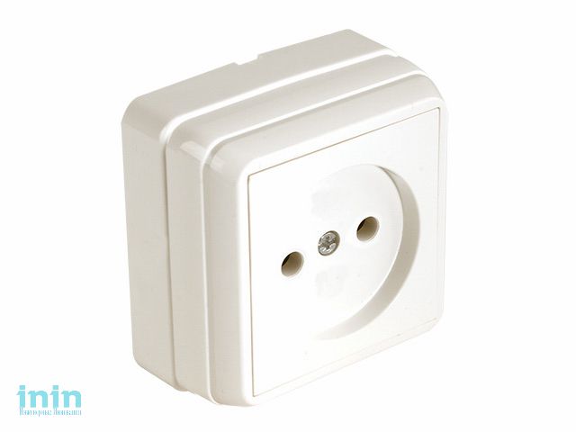 Розетка 1-ая (открытая, б/з, керамика) кремовая, BRON, MUTLUSAN (16 A, 250 V, IP 20)