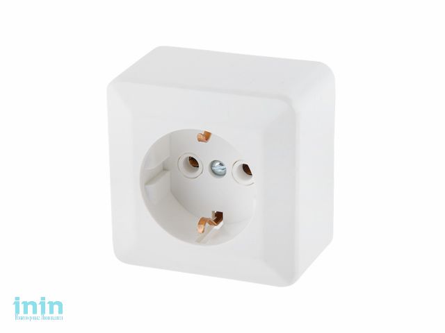 Розетка одноместная открытой установки с заземляющим контактом предназначена для присоединения электрических приемников с номинальным напряжением 250 В к электрической сети переменного тока в нормальных климатических условиях внешней среды по ГОСТ 15150 и ГОСТ 15543.1.