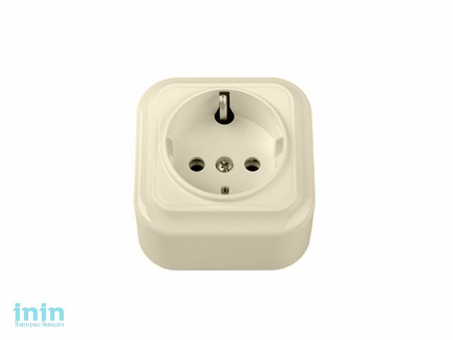 Розетка 1-ая (открытая, с/з) бежевая, Вариант, BYLECTRICA (штепсельная для открытой установки с заземляющим контактом Гарантийный срок:24 месяца)