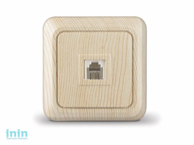 Розетка 1-ая телефонная (открытая) сосна, Олимп, UNIVersal