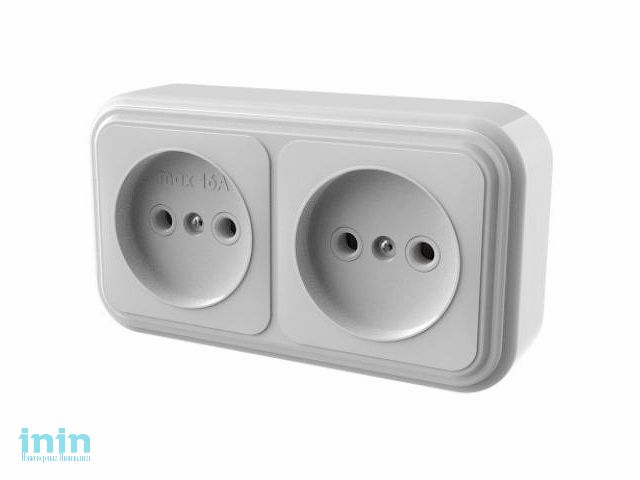 Розетка 2-ая (открытая, б/з) белая, Стандарт, Юпитер (RA16-237-Б) (ЮПИТЕР)