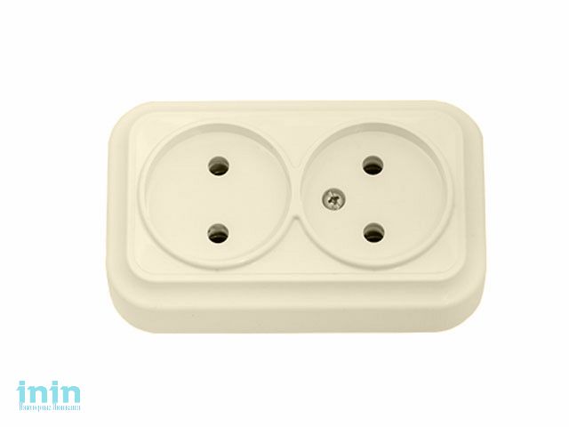Розетка 2-ая (открытая, б/з) бежевая, Вариант, BYLECTRICA (штепсельная двухместная для открытой установки Гарантийный срок:24 месяца)