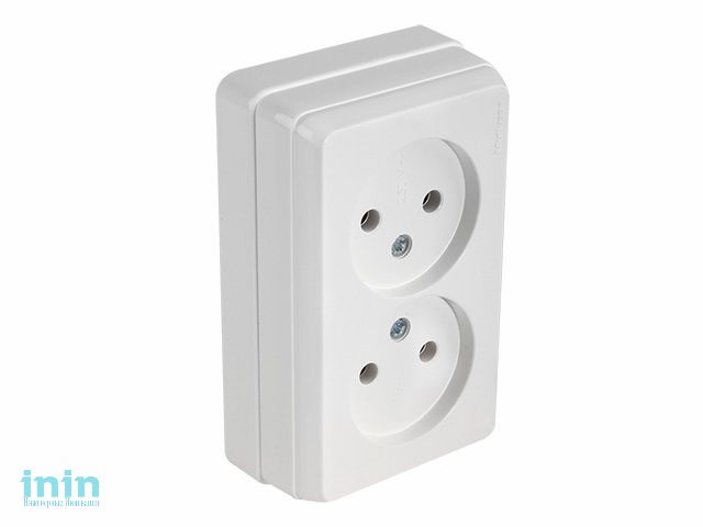 Розетка 2-ая (открытая, б/з, керамика) белая, BRON, MUTLUSAN (16 A, 250 V, IP 20)
