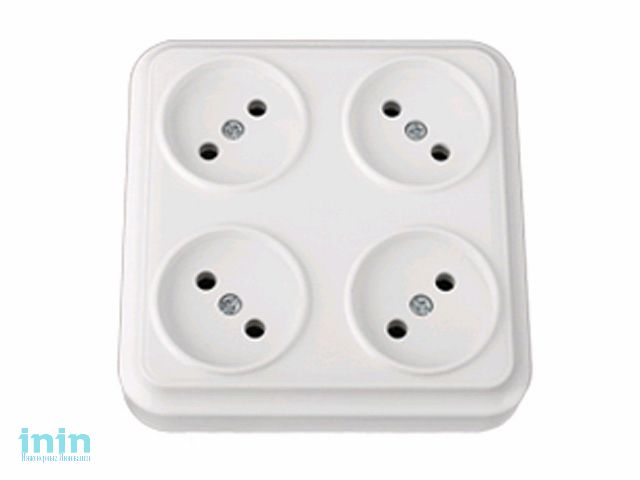 Розетка 4-ая (открытая, б/з) белая, Вариант, BYLECTRICA (штепсельная четырехместная для открытой установки квадратная Гарантийный срок:24 месяца)