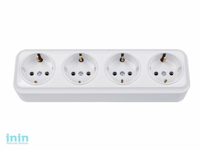 Розетка 4-ая (открытая, с/з) белая, Вариант, Bylectrica (Розетка штепсельная четырехместная для открытой установки с заземляющим контактом Гарантийный