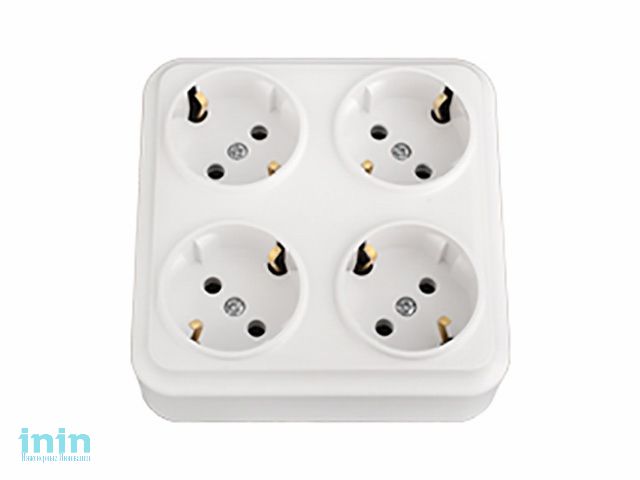 Розетка 4-ая (открытая, с/з) белая, Вариант, Bylectrica (штепсельная четырехместная для открытой установки с заземляющим контактом квадратная Гарантий