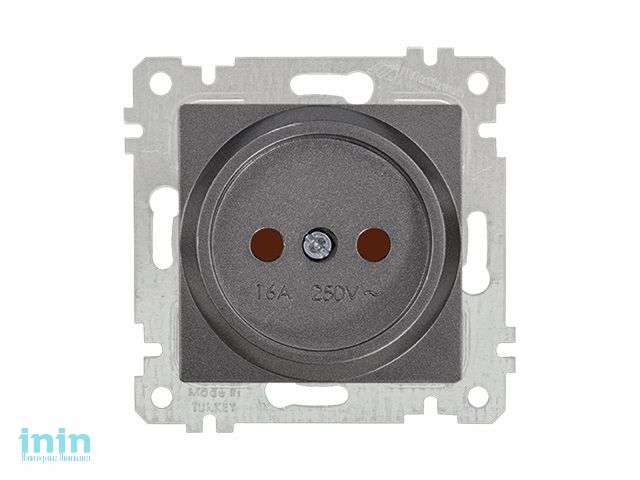 Розетка 1-ая (скрытая, без рамки, б/з, шторки) дымчатая, RITA, MUTLUSAN (16 A, 250 V, IP 20)