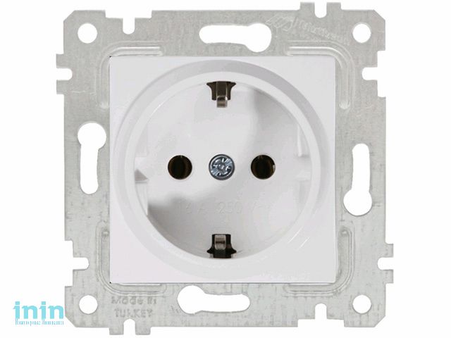 Розетка 1-ая (скрытая, без рамки, с/з) белая, RITA, MUTLUSAN (16 A, 250 V, IP 20)