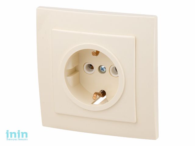 Розетка 1-ая (скрытая, с/з) бежевая, Стандарт, Юпитер (RS 16-133-БЖ) (ЮПИТЕР)