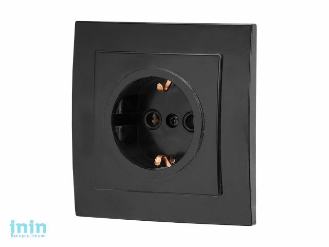 Розетка 1-ая (скрытая, с/з) черная, Стандарт, Юпитер (RS 16-133 Ч) (ЮПИТЕР)