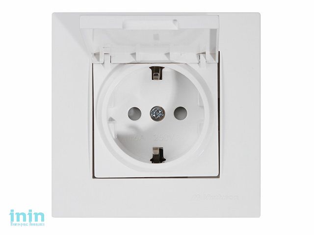 Розетка 1-ая (скрытая, с/з, с крышкой) белая, RITA, MUTLUSAN (16 A, 250 V, IP 20)
