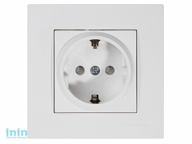 Розетка 1-ая (скрытая, с/з, с/штор) белая, RITA, MUTLUSAN (16 A, 250 V, IP 20)