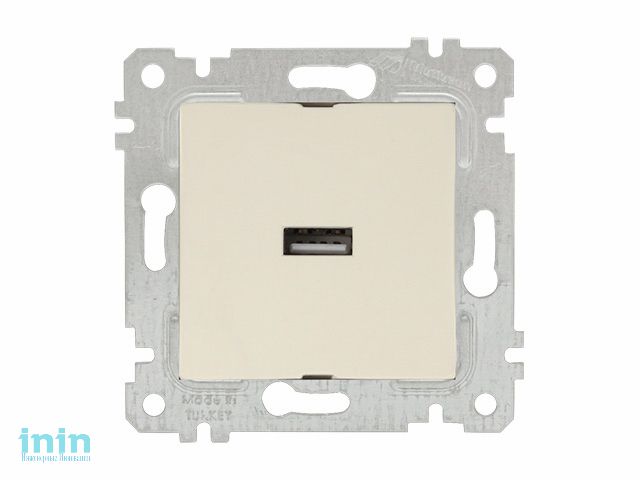 Розетка 1-ая USB (скрытая, без рамки) кремовая, RITA, MUTLUSAN (USB charge, 5V-2.1A)