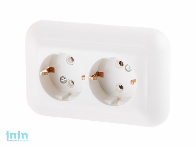 Розетка двухместная скрытой установки с заземляющим контактом предназначена для присоединения электрических приемников с номинальным напряжением 250 В к электрической сети переменного тока в нормальных климатических условиях внешней среды по ГОСТ 15150 и ГОСТ 15543.1. Розетка двухместная, но устанавливается в одноместную монтажную коробку.
