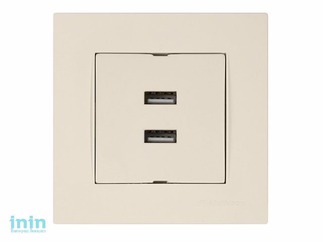 Розетка компьютерная 2хUSB (скрытая, горизонт.) кремовая, RITA, MUTLUSAN (2xUSB charge, 5V-1.0A)