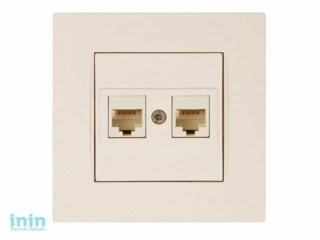 Розетка компьютерная 2xRJ45 (Cat6, скрытая) кремовая, RITA, MUTLUSAN