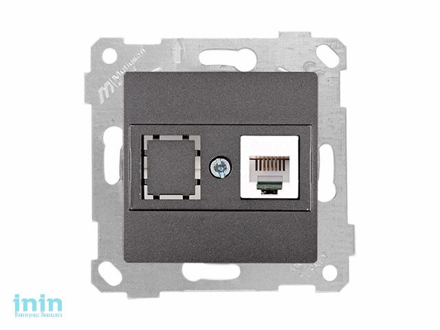Розетка телефонная 1хRJ12 (скрытая, без рамки) дымчаиая, RITA, MUTLUSAN