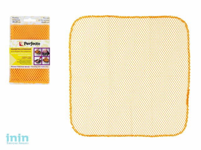 Салфетка кухонная для уборки без царапин Non-Scratch (Нон-Скрэтч) оранжевая, PERFECTO LINEA (размер: 30х29 см)