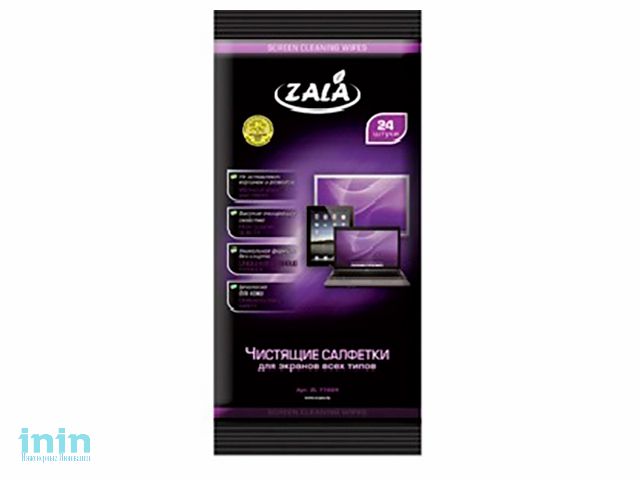 Салфетки влажные чистящие для экранов всех типов, 24 шт., ZALA (мягкая упаковка)