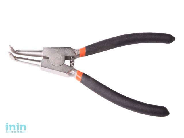 Съемник с изогнутыми губками предназначен для монтажа и демонтажа внешних стопорных колец. Наконечники съемника имеют специальную форму, которая предотвращает срыв стопорного кольца.