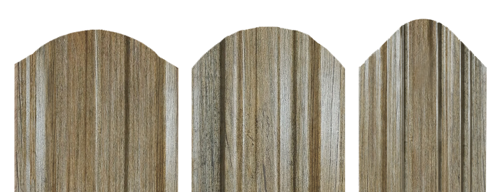 Оптимальный вариант для недорогого забора с широким шагом. Простой монтаж: крепится к профильной трубе всего на 2 самореза, легко справится 1 человек. Уникальность: нет аналогов на рынке — современная, крепкая имитация традиционного деревянного забора.
