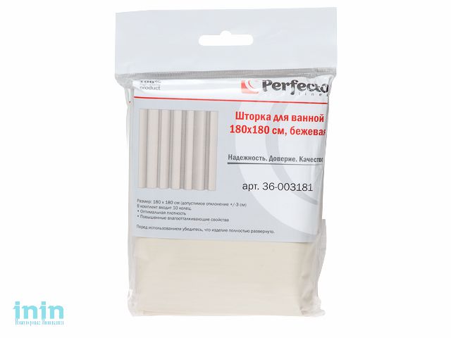 Шторка для ванной 180*180 см, бежевая, PERFECTO LINEA