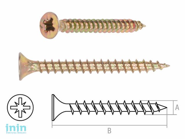 Используется для крепления различных конструкций к дереву, фанере, ДСП. Шуруп имеет потайную головку с крестообразным шлицем (PZ) и острый наконечник.