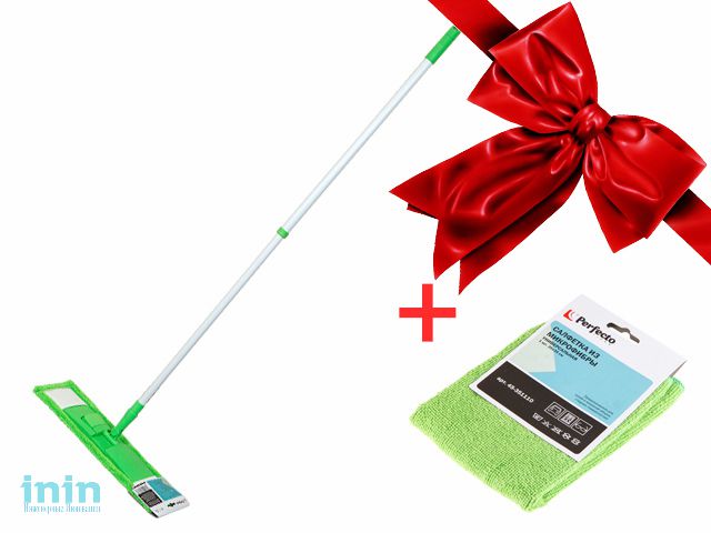 Швабра для пола с насадкой из микрофибры, зеленая + Салфетка из микрофиб. Универсальная (45-351110) (Промо) (PERFECTO LINEA)