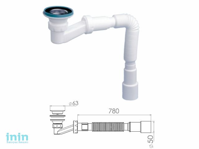 Сифон для душевого поддона низкий h 70 мм, выпуск 64 мм, с гибкой трубой 1 1/2" - 40/50мм, NOVA