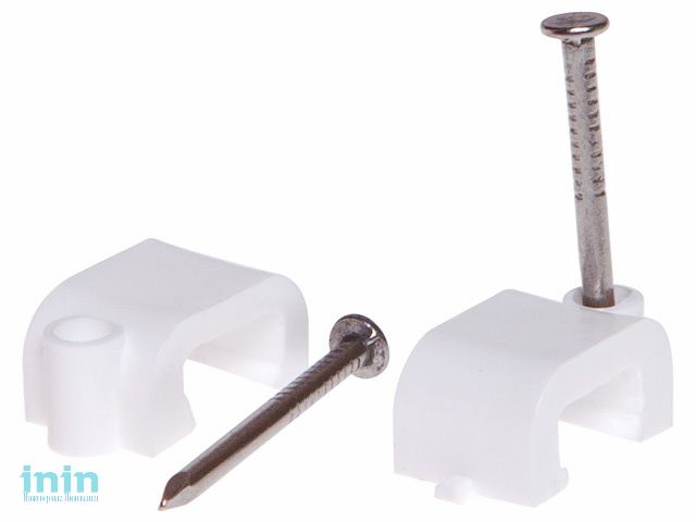 Скоба для крепления прямоугольного кабеля 4 мм белая, с гвоздем (50 шт в зип-локе) STARFIX