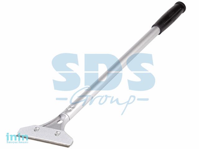 Скребок изготовлен из стали и имеет фиксированное лезвие.  Ручка длиной 40 см позволяет работать в труднодоступных местах. Оснащен прочной металлической рукояткой, покрытой провоскользящим пластиком. Возможность замены лезвий обеспечит долгий срок службы инструмента.