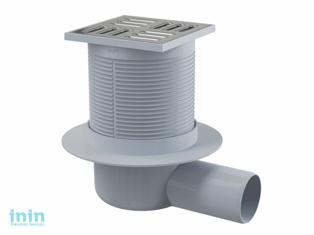Сливной трап 105х105/50, подводка - боковая, решетка - нержавеющая сталь, гидрозатвор - комбинирован