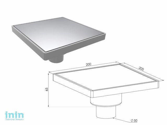 Сливной трап вертикальный D 50, решетка нерж. 200х200 мм, NOVA