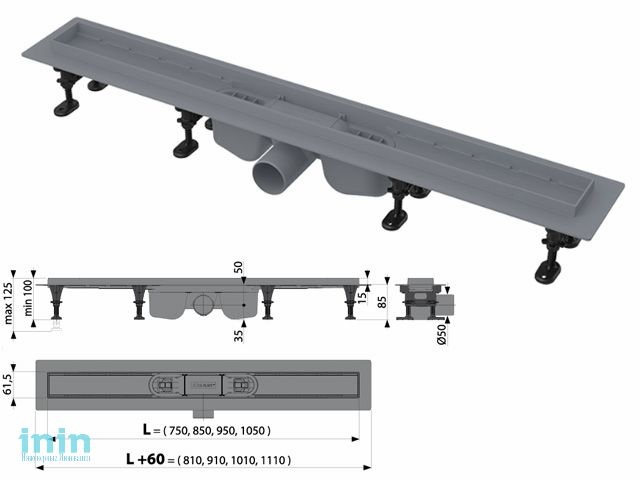 Желоб ALCAPLAST APZ12 под плитку 750/850/950 с решеткой TILE