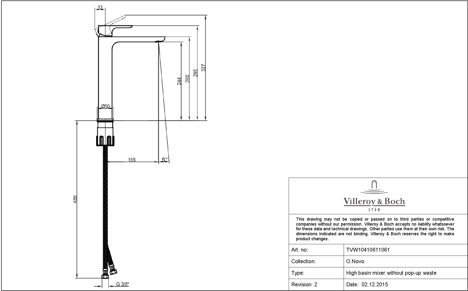 Высокий смеситель 240 для умывальника Villeroy&Boch O.Novo, TVW10410611061