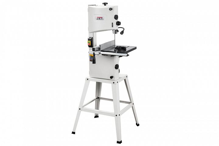 JWBS-10S – напольная ленточная пила с трехопорными роликовыми направляющими, чугунным рабочим столом и двумя скоростями, предназначенная для любительской эксплуатации. Ее рабочие параметры позволяют «распускать» довольно крупные заготовки с высотой до 152 мм, предусмотрен наклон стола для выполнения скошенных резов.