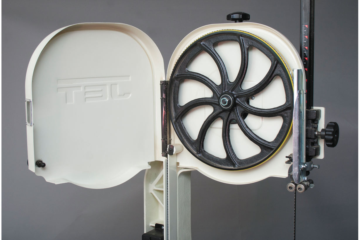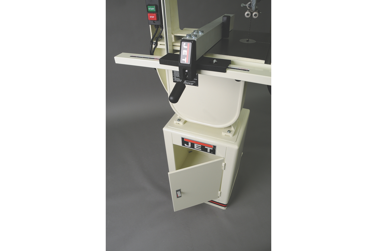 Наиважнейшее качество любого профессионального станка – простота и стабильность настроек – является сильной стороной JWBS-14DXPRO. Дело в том, что эта пила имеет необычную по европейским меркам раму, выполненную из цельной чугунной отливки, её жёсткость и обеспечивает нужные характеристики. Другая особенность, которую многие ставят во главу угла, – очень большая для 14-дюймового (по диаметру шкивов) класса высота пропила, она более соответствует моделям со шкивами на 18 или 20 дюймов, а это совсем другие внешние габариты и цена.