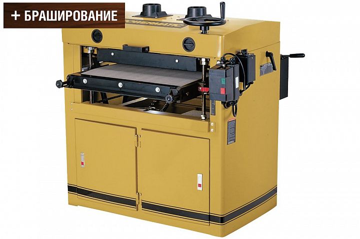 Powermatic DDS-237 – мощный профессиональный шлифовальный станок, предназначенный для эксплуатации на производстве. При условии небольшого съёма материала подходит для калибрования изделий из дерева, клееных пустотелых фасадов, деталей из МДФ и прочих подобных, причем их сразу же можно будет оклеивать пленкой без дополнительной шлифовки.