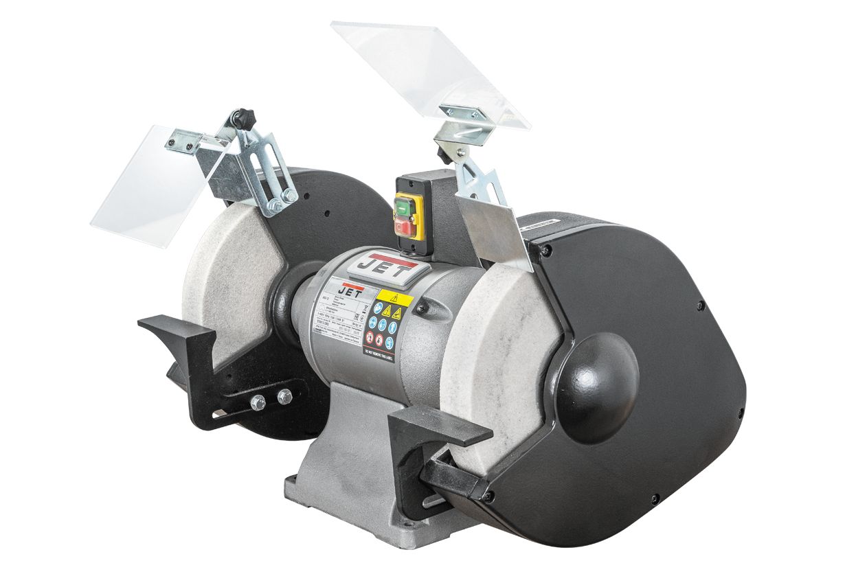 Самое большое точило в линейке заточных станков JET. Диаметр круга 300 мм, ширина круга 50 мм, а посадочный размер круга на вал 32 мм. Мы получаете готовый станок к работе. Нужно сделать балансировку кругов на станке с помощью шарошки, которая идет в комплекте.