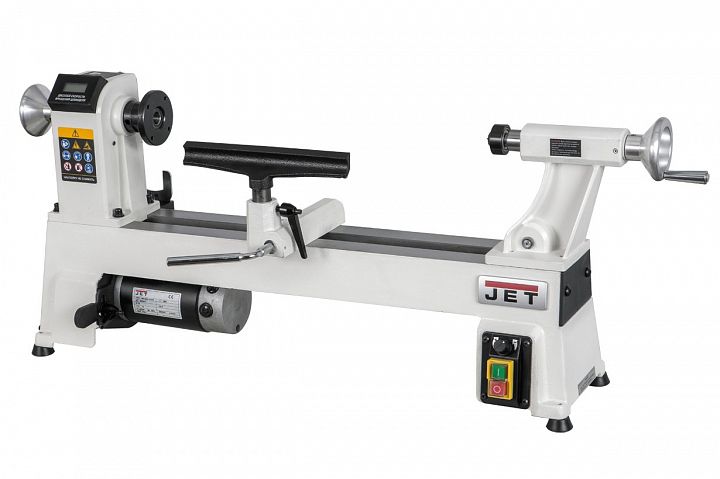JWL-1220LVS — добротный токарный станок любительского класса с чугунной станиной и управляющей электроникой. Высота расположения шпинделя позволяет обтачивать на нем заготовки диаметром примерно до 300 мм в случае крепления на планшайбе и до 230 мм при работе над опорой. Межцентровое расстояние можно увеличить со штатных 510 мм до одного метра, установив удлинитель станины (поставляется в качестве опции).