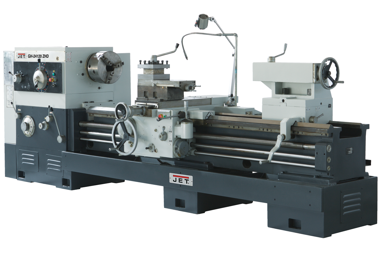 GH-24120 ZHD DRO RFS - старшая модель в линейке токарно-винторезных станков серии GH-24 производства компании JET. Станок ориентирован на тех заказчиков, кто нуждается в обработке длинномерных и тяжелых деталей с непрерывными нагрузками. Он найдет применение на предприятиях различных отраслей, имеющих в своем составе цеха металлообработки, крупных ремонтных базах, конструкторских бюро и т.д. Станок справится с заготовками до 630 мм при обточке над станиной и до 370 мм над суппортом. Предусмотрен мостик gap, при его снятии диаметр обточки возрастает до 830 мм (с ограничением по длине детали 310 мм). Расстояние между центрами у этой модели максимальное - 3000 мм. Чтобы обеспечить необходимое усилие резания, станок оснащен асинхронным электродвигателем мощностью 11 кВт, предусмотрена централизованная автоматическая система смазки узлов и агрегатов. Автоматическая коробка подач предлагает оператору широкий выбор режимов, включая нарезку всех типов резьб. Литая станина GH-24120 ZHD DRO RFSиз выполнена из серого чугуна и решает сразу несколько задач. Она является надежным теплоотводом от режущего инструмента и способна гасить вибрации при обточке массивных деталей. Направляющие станины подготавливаются по фирменной технологии JET (закалка, шлифовка, обработка антифрикционным составом). Как и все модели в данной серии, станок поставляется в максимальной комплектации и может быть запущен в работу в минимальные сроки.
