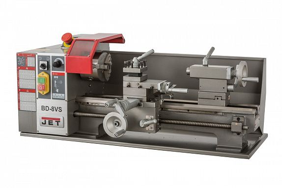 Станок JET BD-8VS – относится к классу настольных токарных станков. Станок поставляется с поддоном для сбора стружки и через поддон прикручивается к тумбе или верстаку. Несмотря на свои маленькие габариты станок способен обрабатывать заготовку диаметром до 210 мм над станиной, а если точить над суппортом, то этот диаметр уменьшается до 135 мм. При этом максимальная длина обработки (РМЦ) составляет внушительные 400 мм.