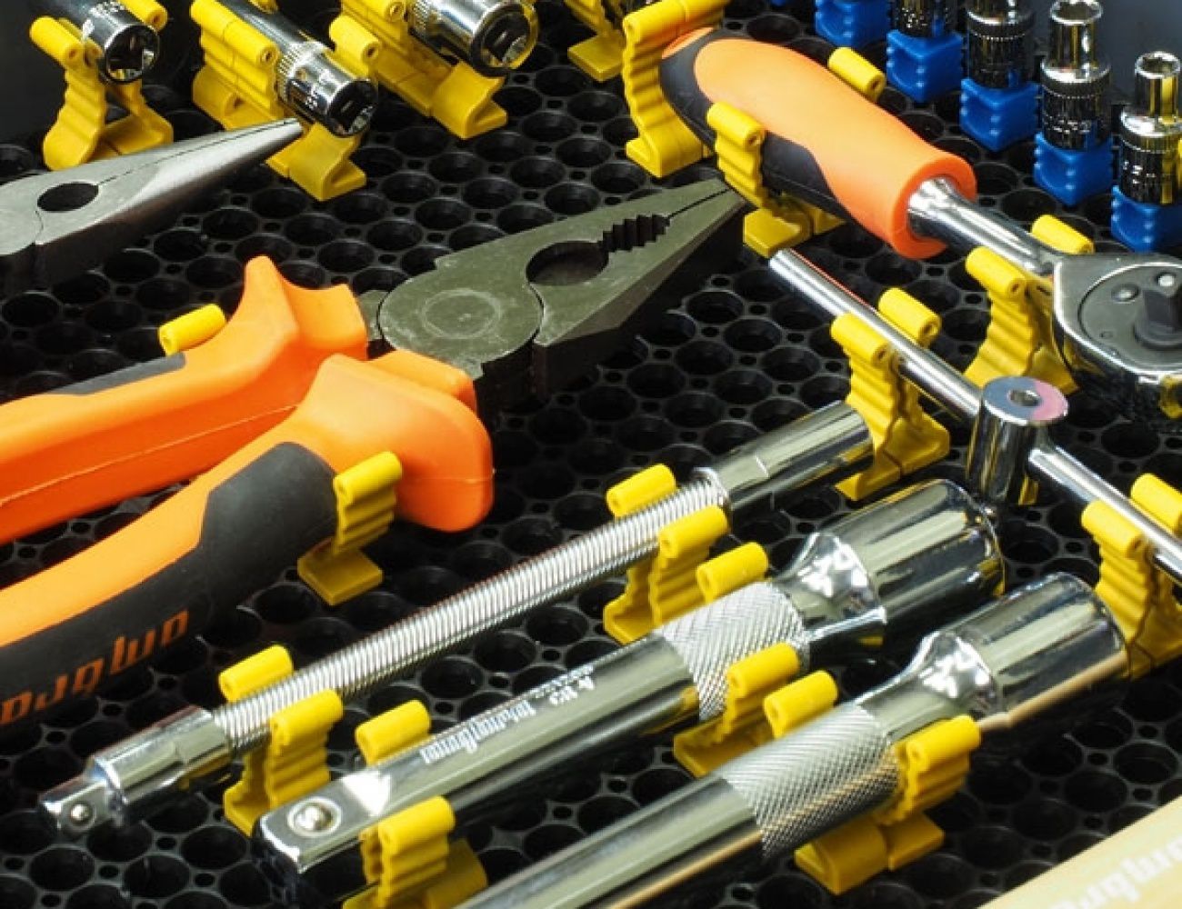 Модульная система крепления инструмента, создана для вашей домашней мастерской. Простоту инсталляции, удобство использования и создание индивидуального рабочего пространства оценят любители. Систему toolboard можно использовать в любой плоскости. Сверхтонкая конструкция 10 мм. позволяет использовать ее в самых низких выдвижных ящиках. Основание системы собирается из модулей 200 х 300 мм. под любой размер. Шаг крепления инструмента 10 мм. Точная стыковка модулей происходит за счёт специальных боковых элементов через которые в последствии собранное основание монтируется на поверхность с помощью саморезов, винтов, болтов, заклепок в зависимости от условий крепления. Набор включает в себя: основание, крючок малый, крючок большой, держатель бит 5/16 и головок 1/2, держатель головок 1/4, держатель бит и значки для адресного хранения инструмента.