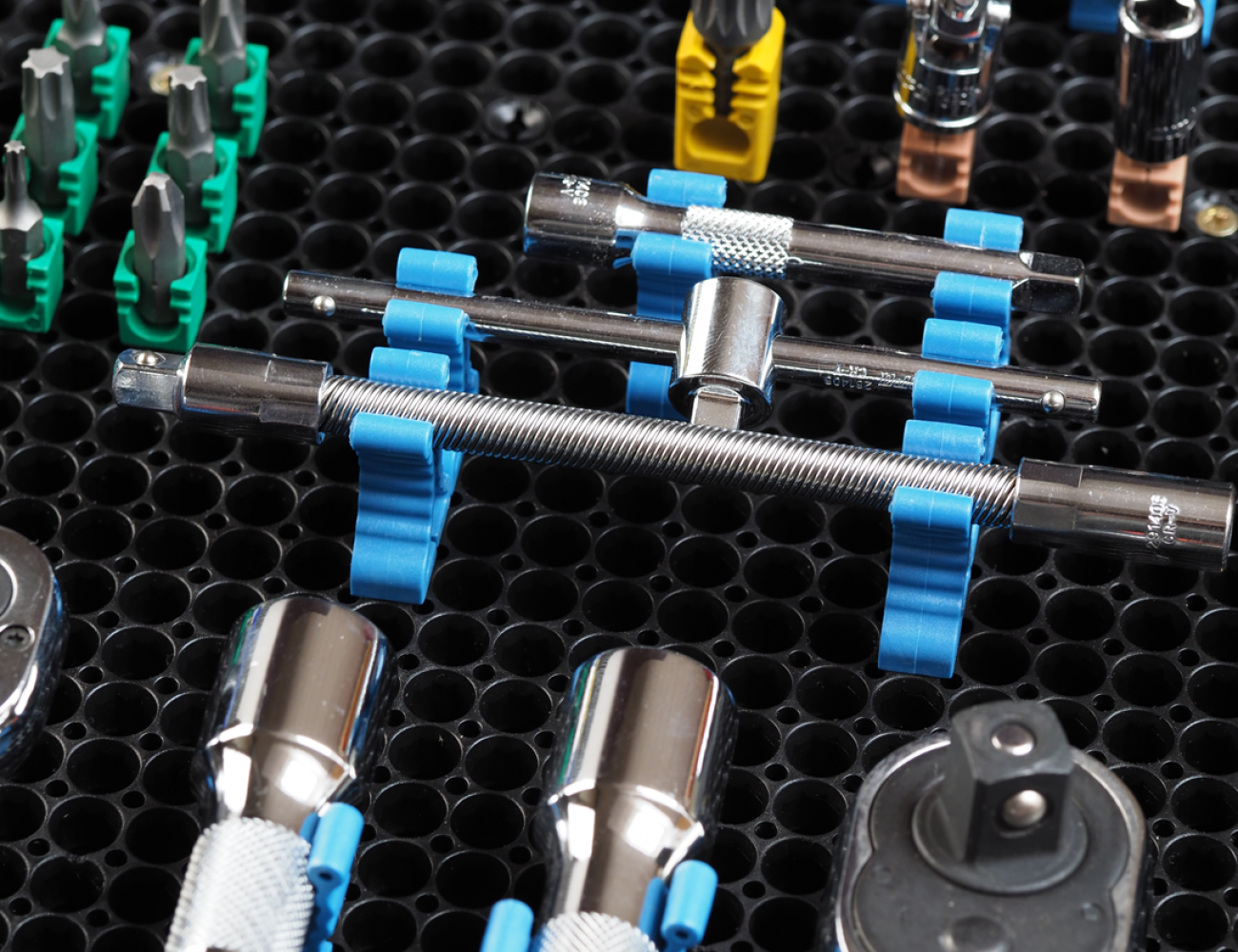 При первоначальной установке фиксаторов в основание предметы могут устанавливаться с усилием, но после 24 часов фиксаторы принимают необходимую форму и инструмент устанавливается без труда. Наша перфорированная панель для хранения инструмента очень удобна и проста в креплении к любой плоскости.
