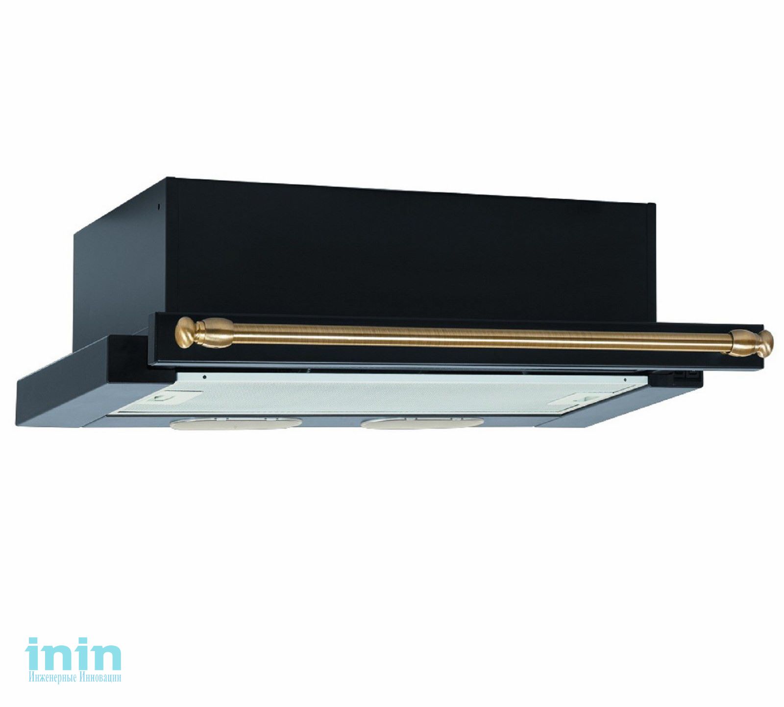 Выдвижная вытяжка, мотор с одной турбиной, механическая клавишная панель управления, 2 скорости, алюминиевый фильтр, рейлинг в цвете «состаренная бронза», лампы накаливания 2*40 Вт, производительность: в тестовом режиме, м3/ч: 400, на максимальной скорости (IEC-61591), м3/ч: 380, на минимальной скорости (IEC-61591), м3/ч: 240, уровень шума (UNE-EN 60704-2-13): на максимальной скорости, дБ: 58, на минимальной скорости, дБ: 35, в комплекте: европейская вилка, опция (не входит в комплект): угольный фильтр C8C код 61801344 - 1 шт., класс энергоэффективности: D, класс гидродинамической эффективности: D, класс эффективности освещения: G, класс эффективности фильтрации жира: C, максимальная номинальная мощность, Вт: 240
