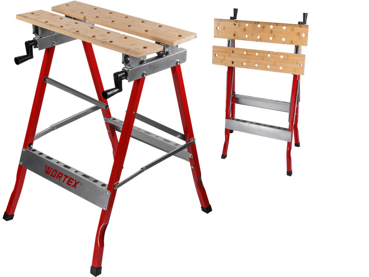 Многофункциональное устройство для облегчения обработки различных заготовок. Столешница состоит из двух частей, которые поворачиваются на фиксированные углы 45 и 90 градусов, что делает возможным фиксацию круглых заготовок, так же имеется функция тисков. Верстак легко хранить и перевозить, благодаря складной конструкции. Предусмотрены отверстия в столешнице для надежной фиксации заготовок. Возможно использовать для закрепления инструмента. Имеет надежную металлическую конструкцию выдерживающую равномерную нагрузку в 150кг !