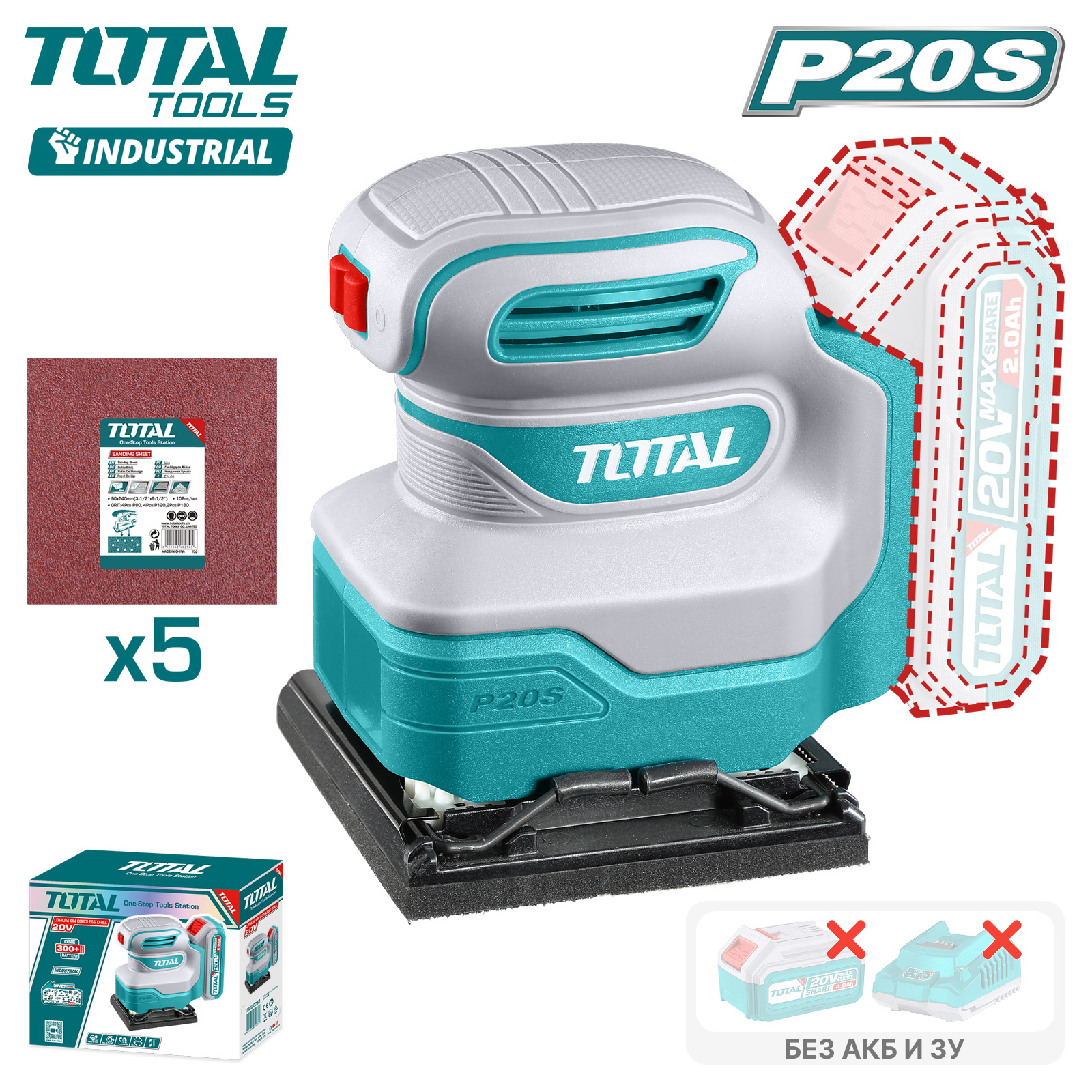 Виброшлифмашина аккумуляторная TOTAL TSHSLI2014
